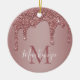 Rose Gold Dripping Glitter Monogram Photo Ceramic Ornament