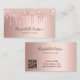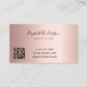 An elegant and glamourous business card on a rose gold background decorated with drips, paint dripping look on front. Elegant white hand lettered style script. Personalise and add Your name, title, contact info and your own QR code to your website address.