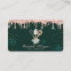 Bakery pastry hand tools, rose gold glitter drips, and flowers on a green background.