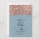 Rose Gold Dusty Blue Glitter Confetti Wedding Invitation
