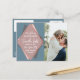 Elegant, chic, and modern with a retro vibe, faux printed rose gold geometric diamond shape outline on dusty blue, mauve, pink and charcoal grey diamond cutout, Save-the-Date wedding Postcards. This classic and sophisticated design is perfect for the trendy and stylish marrying couple. Personalise with your own message on the front as well as a customised monogram initial on the back. All photo print design.