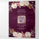 Rose Gold Dusty Pink Floral QR Code Plum Wedding Tri-Fold Invitation