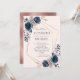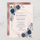 Rose Gold Dusty Pink Navy Blue Geometric Floral Invitation