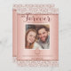 Engagement announcement cards are perfect for when you don’t have a wedding date set, but you can’t wait to share the good news with your friends and family! This elegant luxury design features rose gold background, glitter damask frame on the top and bottom, and trendy script calligraphy “Forever” text. There is a message on the back, which you can delete if you don’t need it, or change the wording to make it a save the date card or engagement party invitation.
