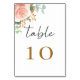 A chic white background. Decorated with a rose gold and blush pink watercolored rose and green eucalyptus leaves, sprigs, greenery, faux gold leaves. Personalize and your table numbers. Black and golden letters.