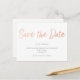 Rose Gold Faux Foil Save the Date postcard featuring "Save the Date" in rose gold calligraphy.