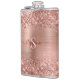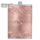 Rose Gold Faux-Glitter Girly Glam Monogram Hip Flask