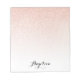 This personalised notepad features a rose gold faux glitter ombre fade with your custom name in pretty script typography. Note: The rose gold glitter effect is achieved with a printed image and is not actual glitter, metallic ink or foil.