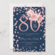 Rose Gold Floral & Confetti 80th Birthday Navy Invitation