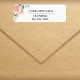 A rose gold and blush pink rose, floral and eucalyptus greenery and faux gold foliage. Personalise and add your name and address. Black letters.