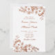 This luxurious wedding invitation features rose gold foil floral illustrations in both the upper and lower corners, framing your custom text with shimmering elegance. Paired with vintage-inspired script and serif fonts on a clean white background, this design is ideal for couples seeking a timeless and romantic wedding style. A perfect fit for garden, classic, or formal weddings in any season.
