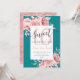 Rose Gold Floral & Glitter Sweet 16 Script Teal Invitation