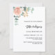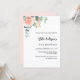 A chic white background. Decorated with a rose gold and blush pink floral, rose flower and green watercolored eucalyptus leaves, sprigs, greenery and a faux gold sprig. Personalise and add your name and party details.