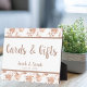 Customisable tabletop sign for wedding features handwriting style font on grey background with rose gold floral framed overlay and centre white text box. "Cards & Gifts" text can be customised to fit any of your "day of" needs, including "welcome" " reception" "photo booth" "parking" "cocktails" etc.