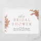 Rose Gold foil. Rounded. Modern design. Floral. Bridal shower invitation. White background.