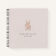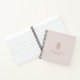 Chic personalised spiral notebook for your salon or hairstyling business features two lines of custom text in classic grey lettering, on a pale blush pink background adorned with a pair of flower-embellished scissors in faux rose gold foil. Personalise with your name or salon name, or your choice of custom text.