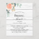 Rustic white wood as background. Decorated with a rose gold and blush pink floral, rose flower and green watercolored eucalyptus leaves, sprigs, greenery and a faux gold sprig. Personalise and add the name of the bride to be and party details.