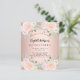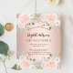 A modern, stylish and glamourous invitation for a Quinceañera, 15th birthday party. A rose gold background with blush pink flowers, roses. The name is written with a modern hand lettered style script. Personalise and add your party details.