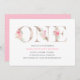 First birthday invitation with faux rose gold foil letters 'one' and watercolor pink roses. So elegant and pretty!