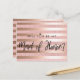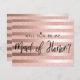 Simple elegant Maid of honour proposal postcard. Design featuring brush script '' Maid of honour'' on a rose gold glitter and foil stripes background. Add your message to the back of this postcard. To edit template click customise further.