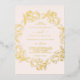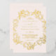This elegant rose gold foil wedding invitation is perfect for a chic and romantic celebration. Featuring a modern boho design, it showcases a whimsical arrangement of hand-drawn flowers, leaves, and botanicals in shimmering pressed rose gold foil on a soft blush background