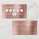 Blush Pink - Rose Gold Foil Metallic Minimalist Loyalty Stamp Discount Card with white hand lettered typography for the monogram on the back of the card with business details. The Rose Gold Foil Loyalty or Rewards Business Card can be customised for any profession and contains an editable 5 punches and % off on the front of the Loyalty Punch Card . Please contact the designer if you need matching customised products.
