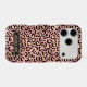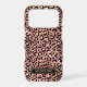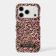 Customise this rose gold foil leopard print iPhone 17 pro case with your your name in a trendy modern CAP font in gold on black. It's so chic!