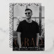 Simple graduation announcement featuring the graduate's vertical photo with "Grad" displayed in rose gold foil modern art deco lettering. Personalize the front of the single photo graduation announcement by adding the graduate's name, school, and grad year. The announcement reverses to display a black and white geometric swirl design.