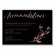 Rose gold foil effect wedding accommodation cards with flowers and custom text printed on black background