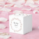 Rose gold foil effect wedding favour boxes with floral wreath and custom text - you can add brides and grooms name and wedding date, printed on white background