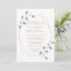 Rose gold geometric frame typography Bat Mitzvah with hand painted blue leaf branches on customisable white background.