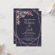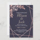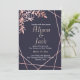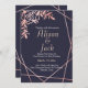 Rose gold geometric frame navy blue wedding invitation