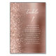 The left-hand edge of this elegant modern wedding table number card features a rose gold faux glitter border. The word "table" and the table number appear in white handwriting script on a rose gold faux brushed metal background. Add the names of your guests who are assigned to each table.