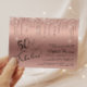 Elegant, chic and budget-friendly 50th birthday party invitation featuring "50 & Fabulous" written in a stylish script, a rose gold background and rose gold faux glitter dripping down. Personalise with her name and the party details.
