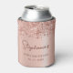 Elegant Modern Sparkle Rose gold glitter metallic Personalised Monogram Name 90th (or ANY AGE) Birthday Party Can Cooler. This Girly Adult feminine NINETY (NINETIETH) Birhday party design featuring a Monogram Name in a stylish handwritten calligraphy script and date and age on blush pink or rose gold faux brushed metallic foil look background with loose glam glitter border. Ideal for a feminine girly milestone birthday celebration, this perfectly captures the essence of a modern rose gold or blush pink glitter sparkle girly birthday party.