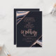 Rose Gold glitter navy blue agate geode marble typography on customisable navy blue and faux rose gold geometric stripes chic wedding , perfect for elegant, luxurious wedding,