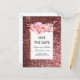 Rose Gold Glitter and Blush Flowers Save the Date Announcement Postcard