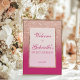 This glamourous sweet sixteen welcome sign features a faux rose gold glitter border fading into a rich pink ombre background, with elegant serif and script fonts to celebrate the birthday girl. Perfect for making a statement at the entrance of the party, it can be personalised with the guest of honour’s name and date. A sparkling way to set the tone for a night to remember.