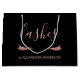 Blush Pink - Rose Gold Glitter and Sparkle eye lash extensions cosmetologist Personalised Business Black Gift Bag. The name and profession can be changed on this bag.