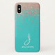 Rose Gold Foil and Teal Girly Glitter Confetti Pattern on a an Elegant Monogrammed Case. This Rose Gold - Blush Pink and Aqua Blue case can be customised to include your initial and full name. Please contact the designer for matching items.