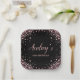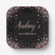 Modern Elegant Sparkle Rose Gold Glitter Black 60th (or any age) Birthday Monogram Custom Personalised Paper Plates. This feminine Girly Adult Birhday party paper plates an elegant hand lettered calligraphy script and rose gold diamond glitter frame on black background. Ideal for a feminine adult milestone birthday celebration, perfectly captures the essence of a modern rose gold and blush pink glitter sparkle girly birthday party.