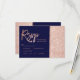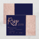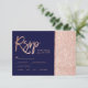 Rose gold glitter block navy blue rsvp wedding card