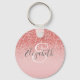This personalized rose gold glitter key chain features a monogram in a script font with a name and initial on a faux rose gold glitter and blush pink ombre background. Personalize it with your own text. This girly keychain is an ideal gift for a bridesmaid or a special someone in your life.