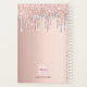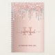 A rose gold background with elegant faux rose gold, pink and faux silver glitter drips, paint drip look. Personalise and add a name, monogram letter and a title. The name is written in dark rose gold with a large modern hand lettered style script with swashes. To keep the swashes only delete the sample name, leave the spaces or emoji's in front and after the name.