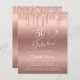 Elegant, chic and budget-friendly 50th birthday party invitation featuring "50 & Fabulous" written in stylish white script against a rose gold background, with rose gold faux glitter dripping from the top. You can personalize with her name and the party details in white typography.