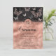 Rose Gold Glitter Butterfly Modern Quinceañera Invitation