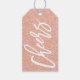 Faux Rose Gold Glitter Cheers Gift tag with room for a message from the Bride and Groom on the back. A perfect way to customise wedding and shower favours.