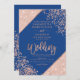 Rose gold glitter confetti chic blue wedding invitation