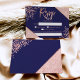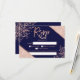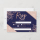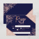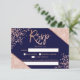 Rose Gold typography on customisable navy blue rose gold glitter colour block, and faux rose gold geometric stripes chic rsvp wedding , perfect for elegant, stylish wedding,
