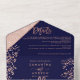 Rose gold glitter confetti navy chic wedding all in one invitation
